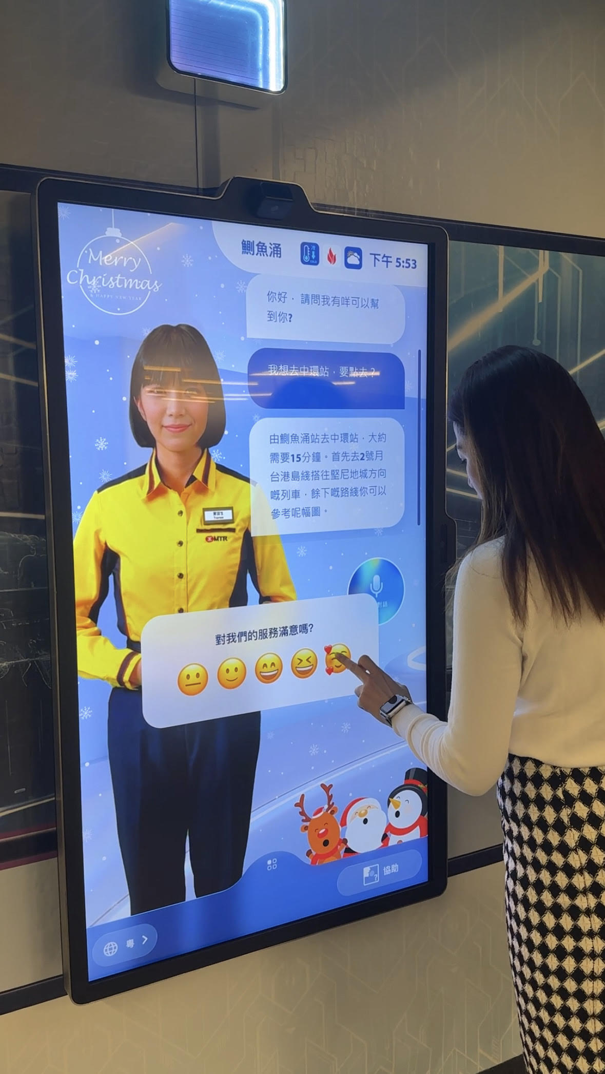 在港鐵車站這種多語言且噪音環境下,我們的自然語言處理(NLP)配合大型語言模型(LLM),展現了卓越的處理能力。不僅能夠處理廣東話的同音異字問題,還能應對香港市民喜愛的中英夾雜式對話。這一技術的成功應用,使我們的 AI 大使在「兩文三語」的挑戰中表現出色,並在嘈雜的車站環境中仍能準確識別和回應乘客的需求。